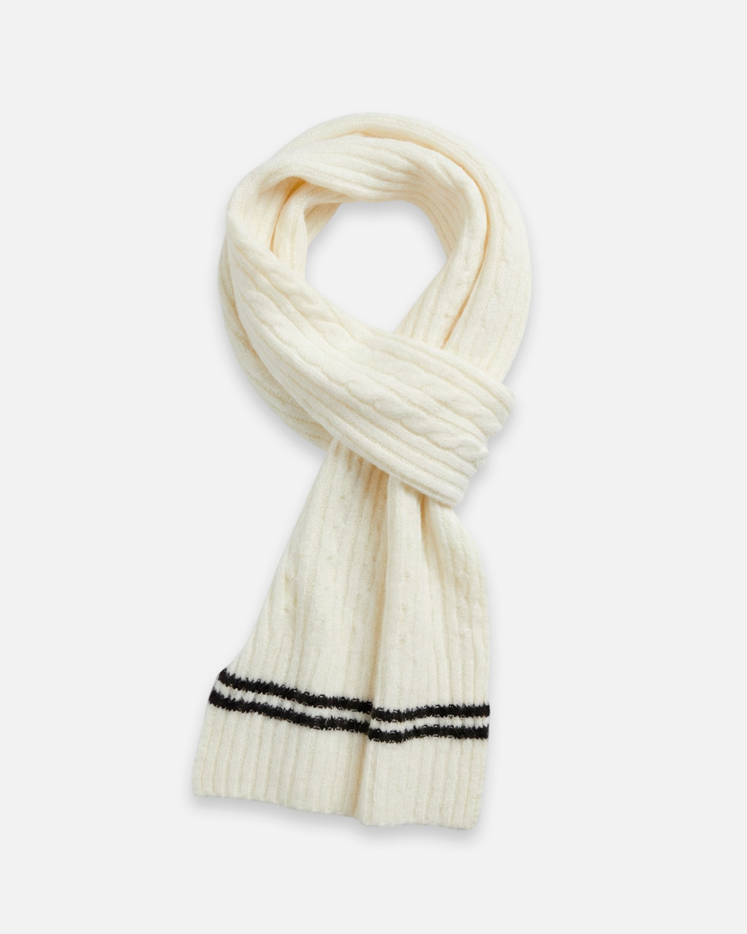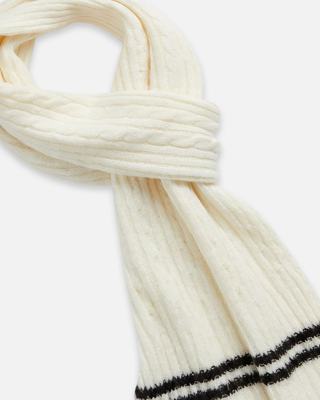 Bufanda tejida con diseño trenzado con lineas finas.