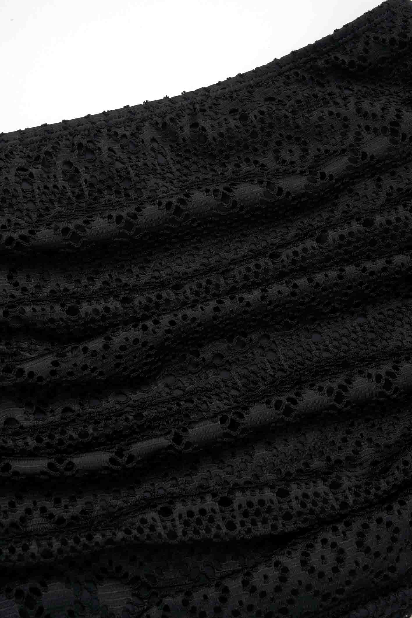 Descubre la POLLERA DE PLAYA TULUM, una prenda ideal para adolescentes que buscan estilo y comodidad en verano. Con su tela de lycra y superposición de encaje calado, esta pollera negra cuenta con frunces en los laterales y un elástico embutido en la cintura, perfecta para disfrutar del sol con elegancia.