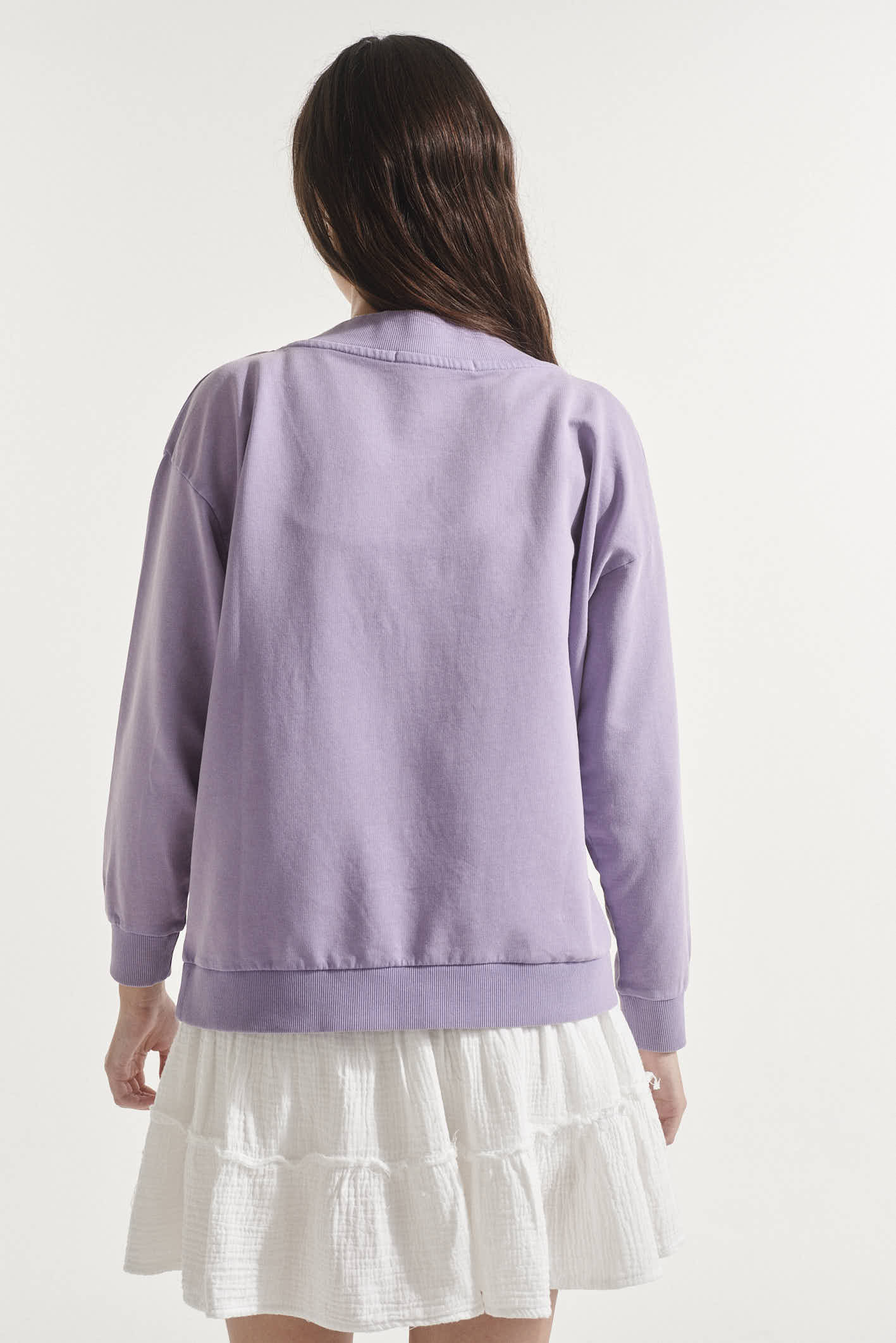 Descubre el BUZO JENNA, un estilo oversize perfecto para adolescentes que buscan comodidad y frescura en verano. Con escote en V, lavado láser y una gran estampa en el delantero, este buzo de 100% algodón en gris topo es ideal para cualquier ocasión.