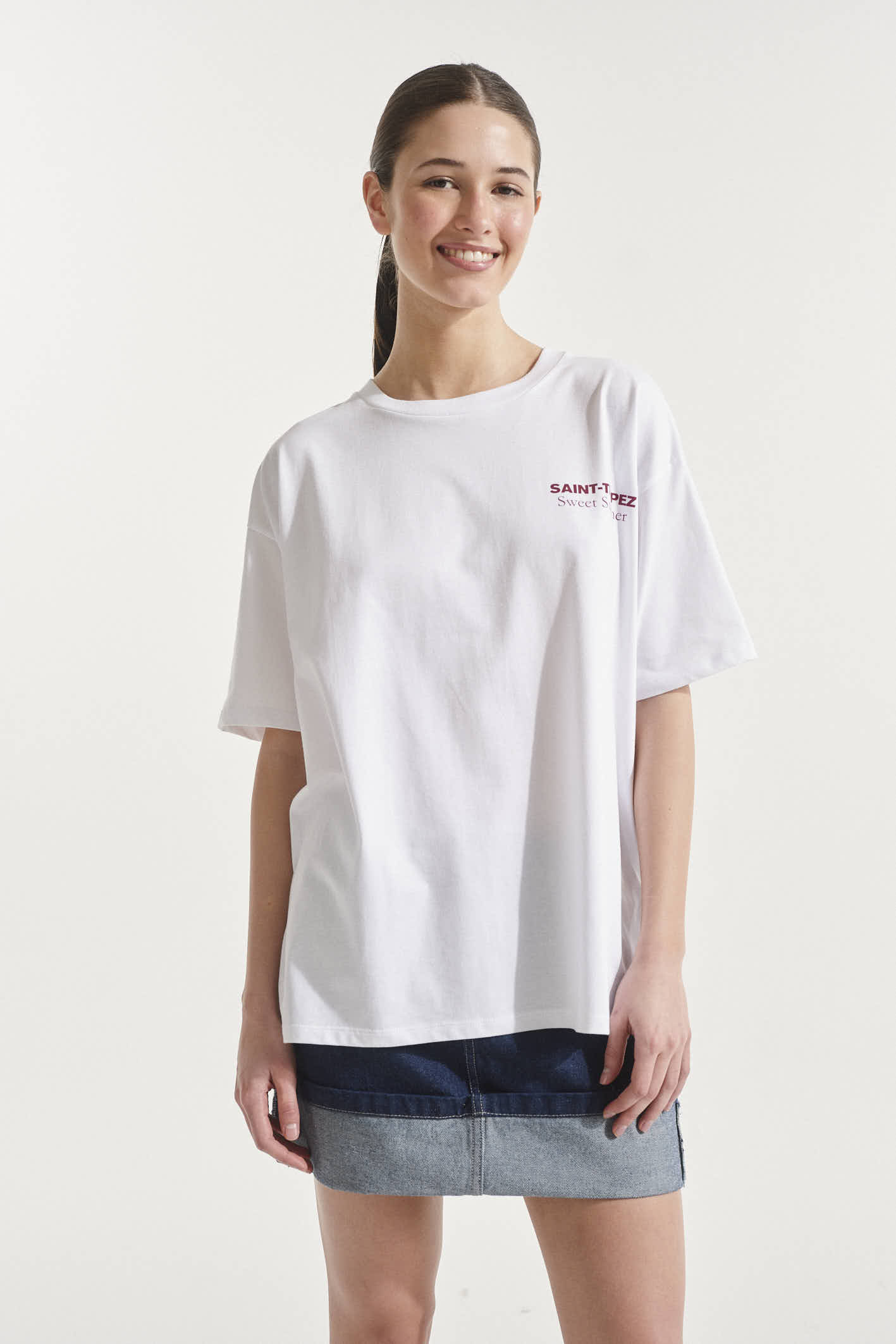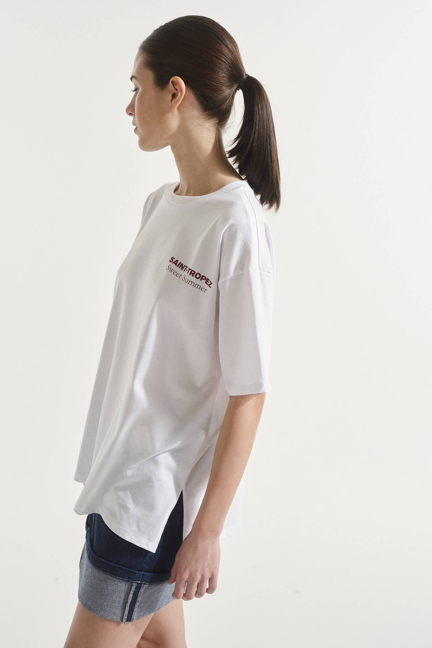 Descubre la REMERON LUCIA, una manga corta de jersey con cuello de ribb, perfecta para adolescentes que buscan comodidad y estilo en verano. Con aberturas en los laterales y una encantadora estampa en el frente y la espalda, esta prenda 100% algodón en rosa claro es ideal para los días soleados.