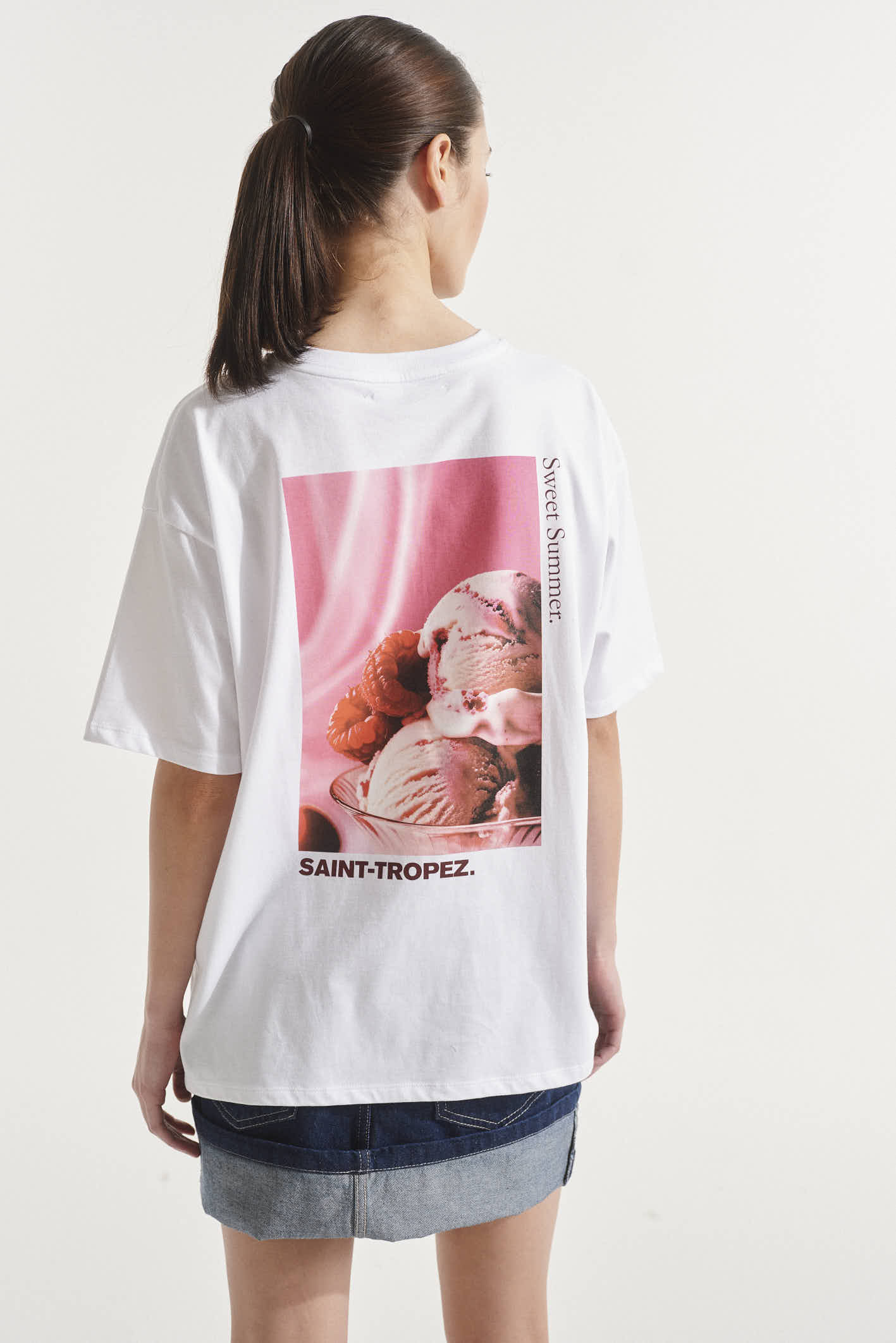 Descubre la REMERA HOLLY, una moderna remera de manga corta de ribb con lycra, perfecta para adolescentes en verano. Con collaretas a contra tono en cuello, hombros y mangas, y una atractiva estampa en el frente, esta prenda combina comodidad y estilo en una paleta de colores crudo, bordo, azul y blanco.