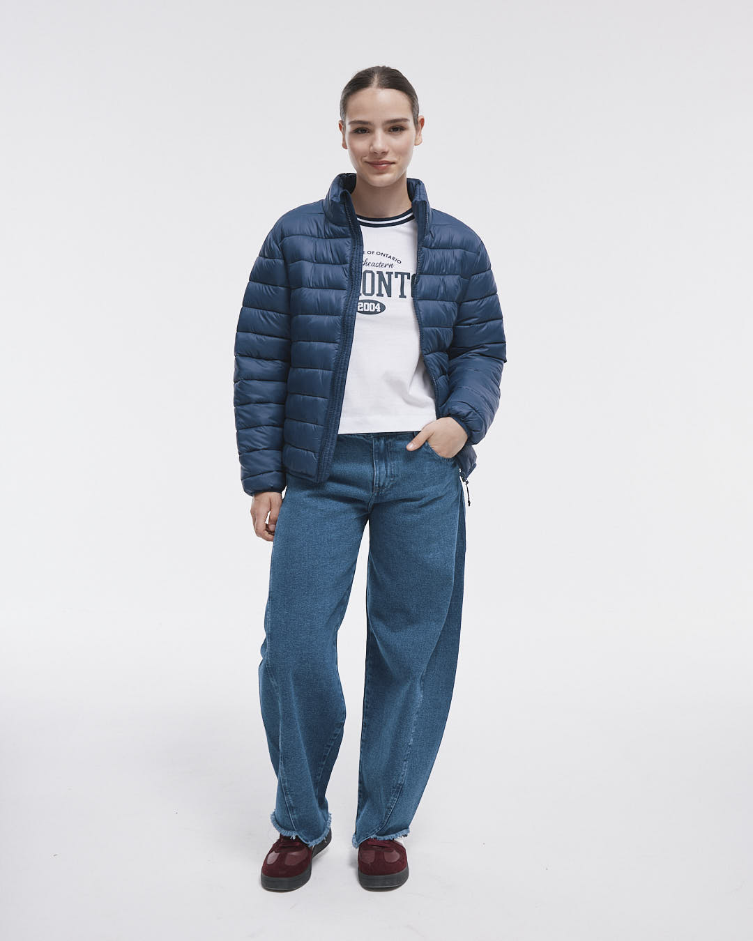 La Campera New Skyler es tu compañera perfecta para los días fríos, con su diseño de puffer y canelón angosto que te mantendrá abrigada y a la moda. Con un cierre de nylon al tono de la tela principal, bolsillos laterales y una capucha escondida en el cuello.