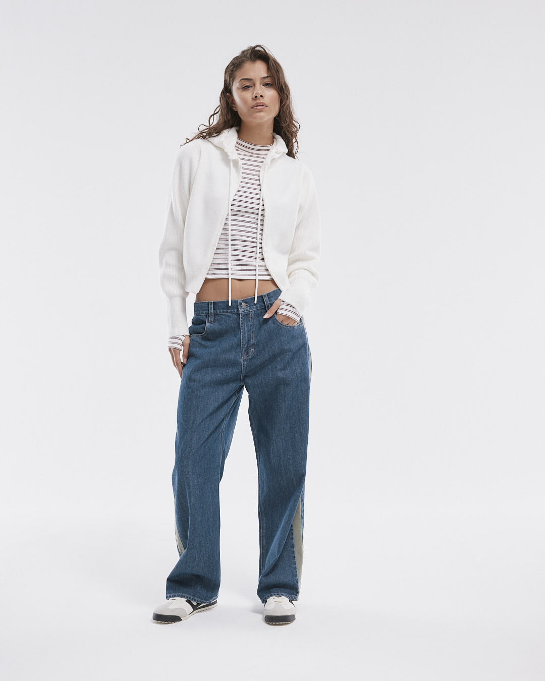 El Cardigan Oslo, un tejido suave que cuenta con un cierre diente de perro desmontable y una capucha con cordón para esos días frescos. Además, su dije metálico de marca en el escote trasero.