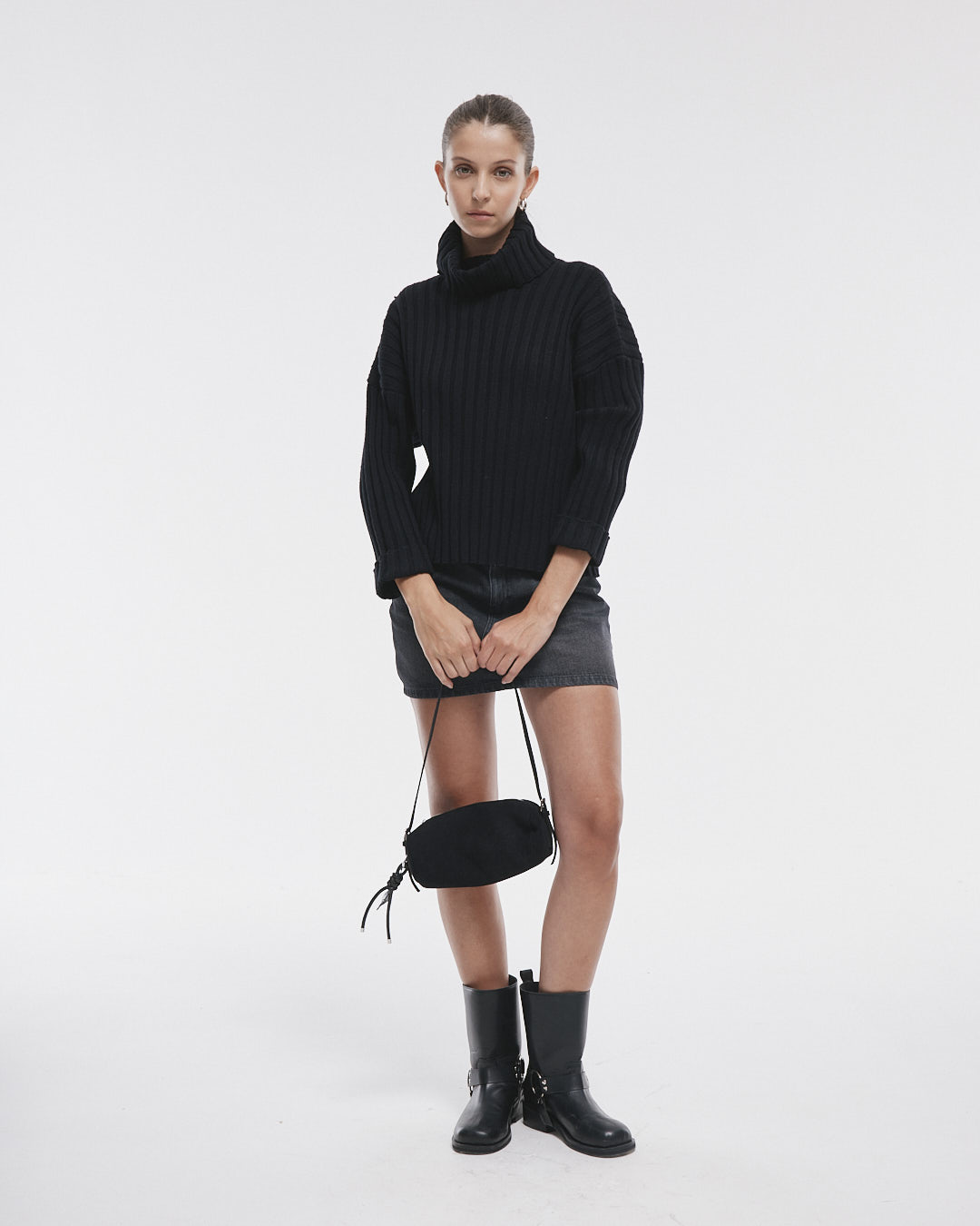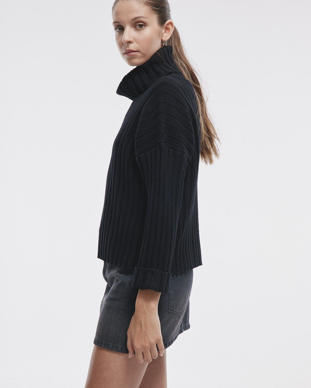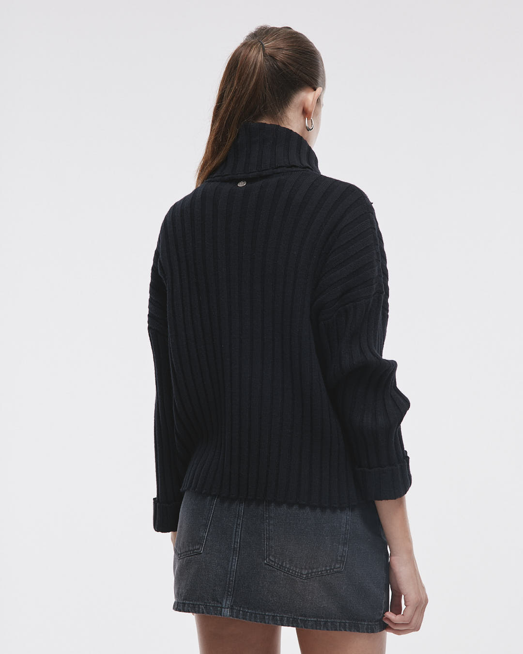 Sweater Richmond, un diseño cómodo y moderno que cuenta con cuello polera y mangas largas con puños doblados. Su toque especial es el dije metálico de marca en el escote trasero, perfecto para darle un estilo único a tu outfit.