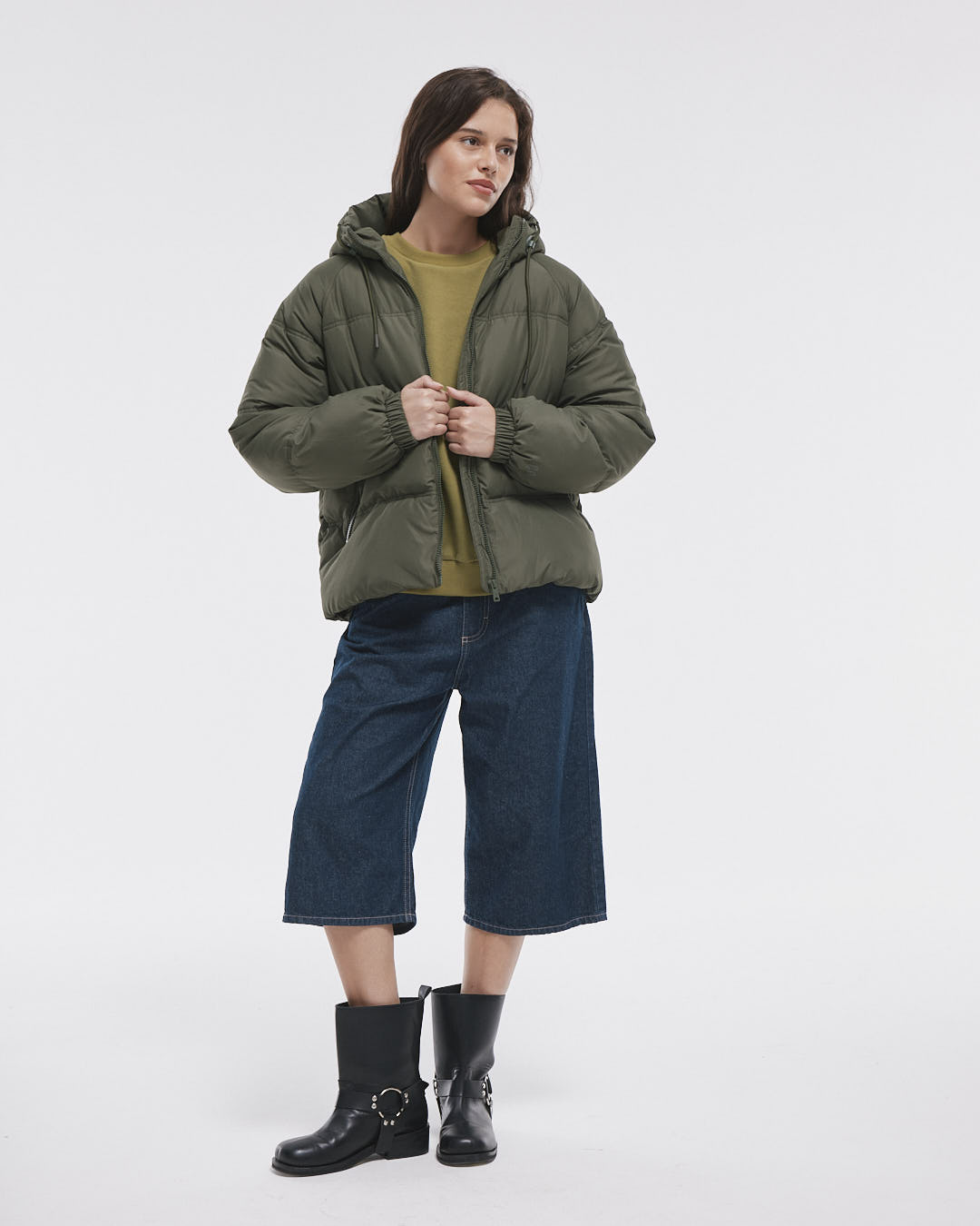 La Campera Berna es tu nueva aliada para el frío, con su diseño puffer y matelasseado que te mantendrá abrigada y a la moda. Con capucha ajustable, bolsillos con cierre y detalles en gomita, esta campera combina estilo y funcionalidad para que te sientas cómoda siempre.