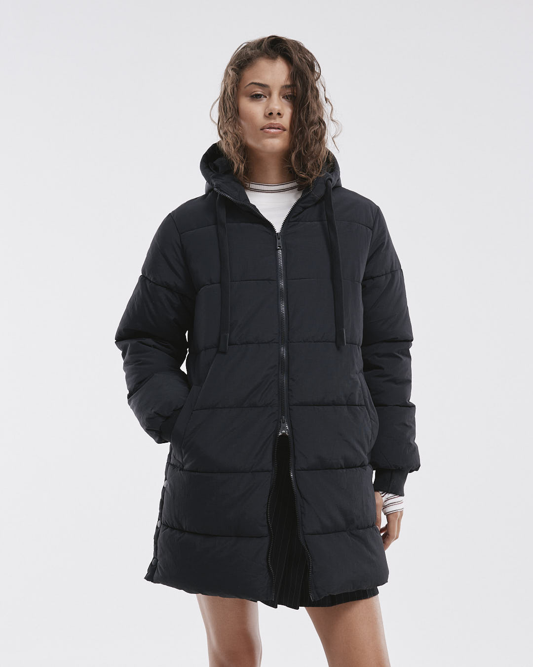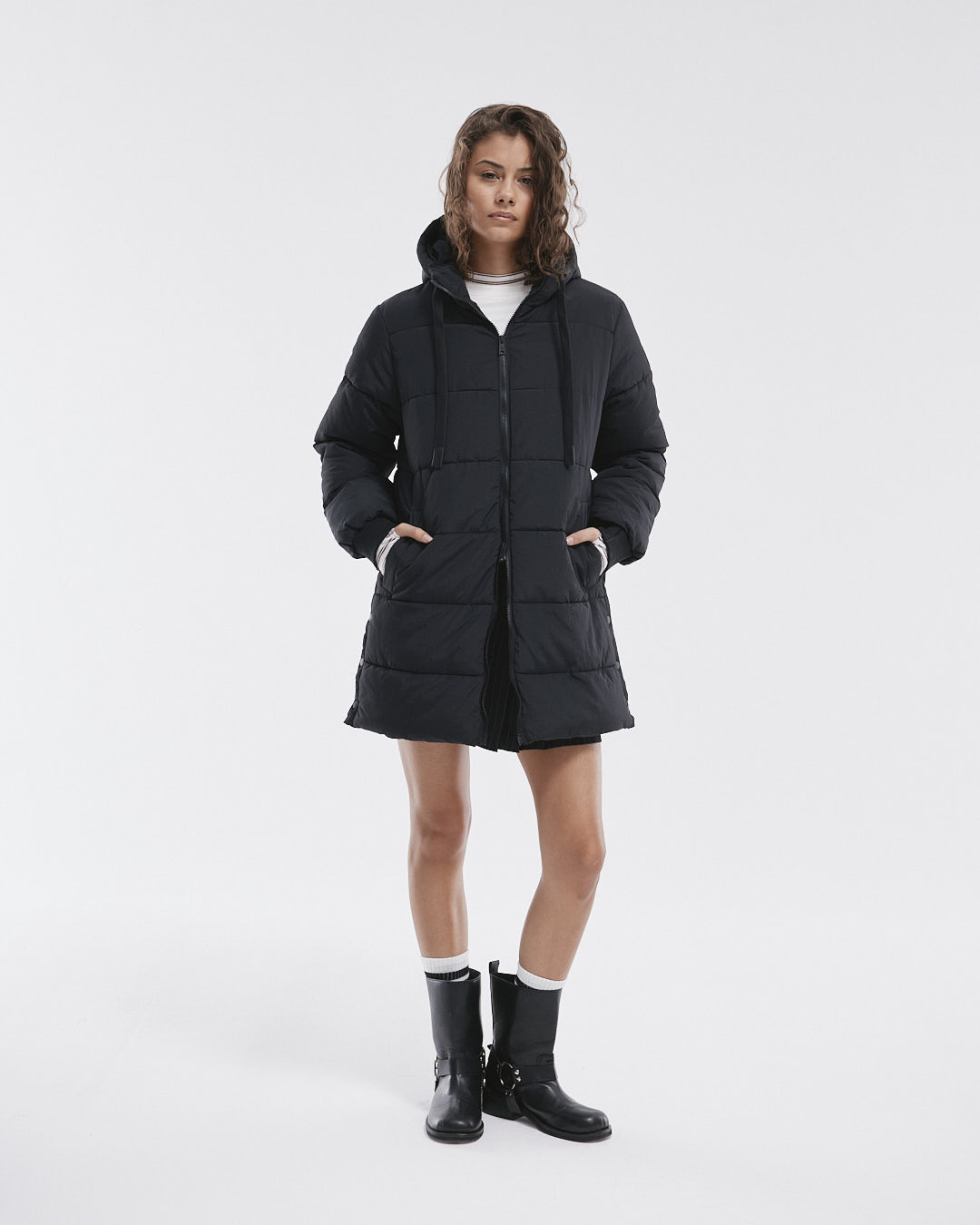 La Campera Quebec es tu nueva aliada para el frío, con su diseño largo y matelaseado que te mantendrá abrigada y a la moda. Con puños de ribb, capucha ajustable y prácticos bolsillos frontales, esta campera combina estilo y funcionalidad, perfecta para cualquier aventura urbana.