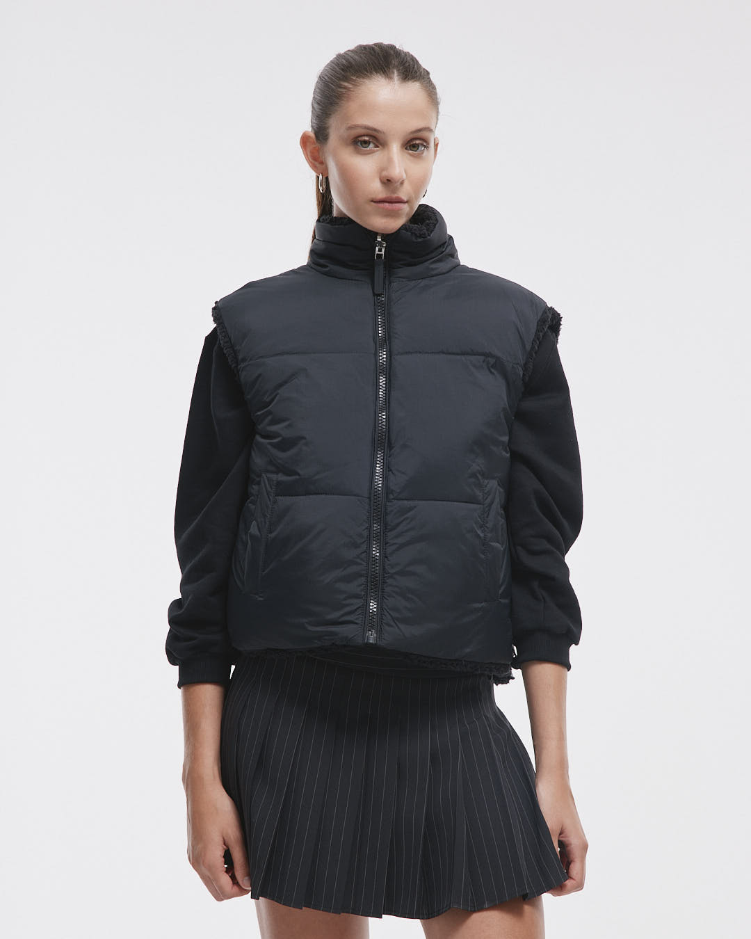 ¡Lucí increíble con el Chaleco Tallin! Este chaleco puffer reversible combina nylon y corderito, ofreciéndote dos estilos en uno. Con un bordado de logo en el lado de corderito, bolsillos prácticos y un ajuste perfecto, es la prenda ideal para mantenerte cómoda y a la moda en cualquier ocasión.