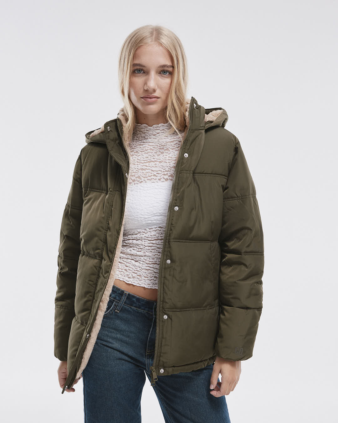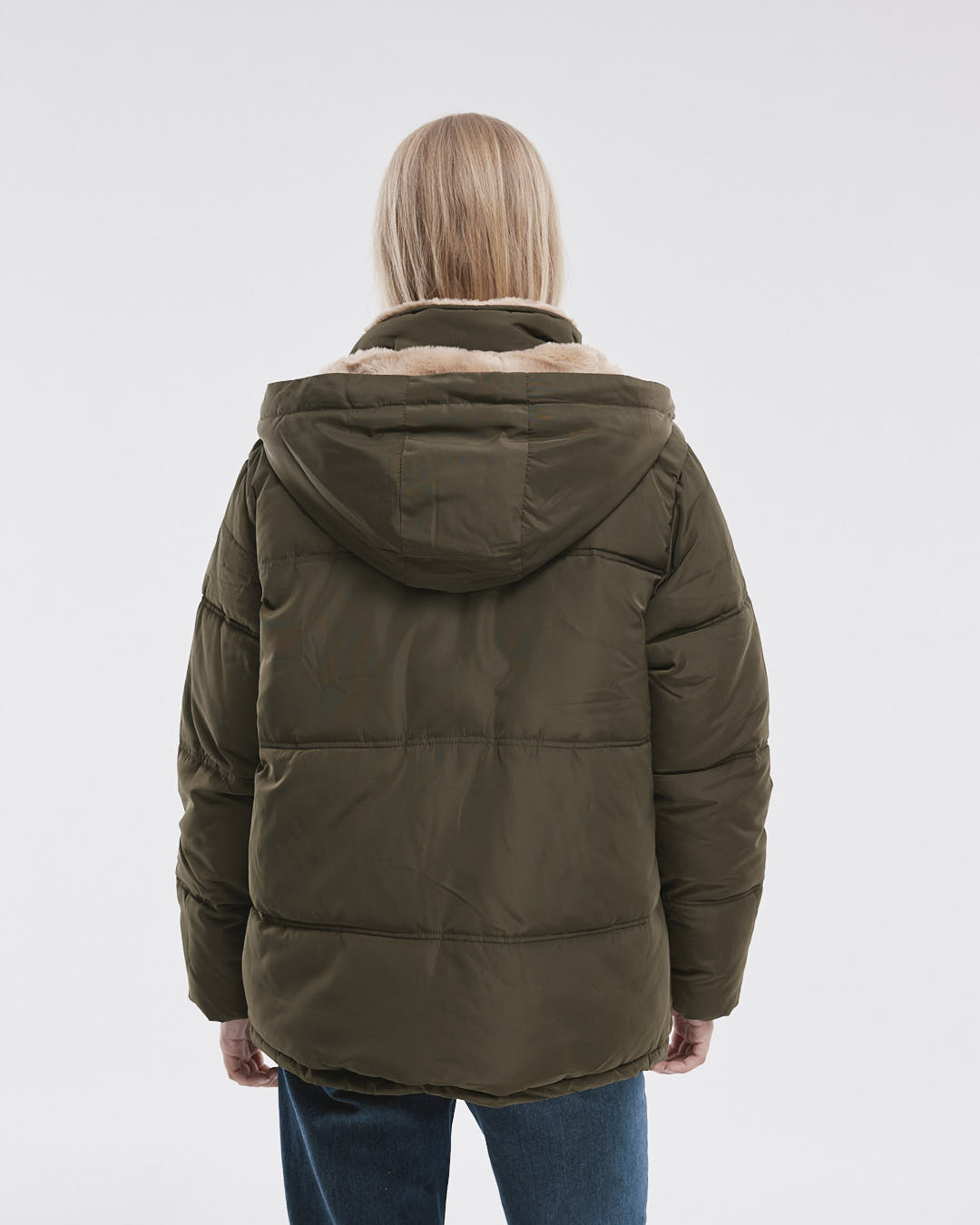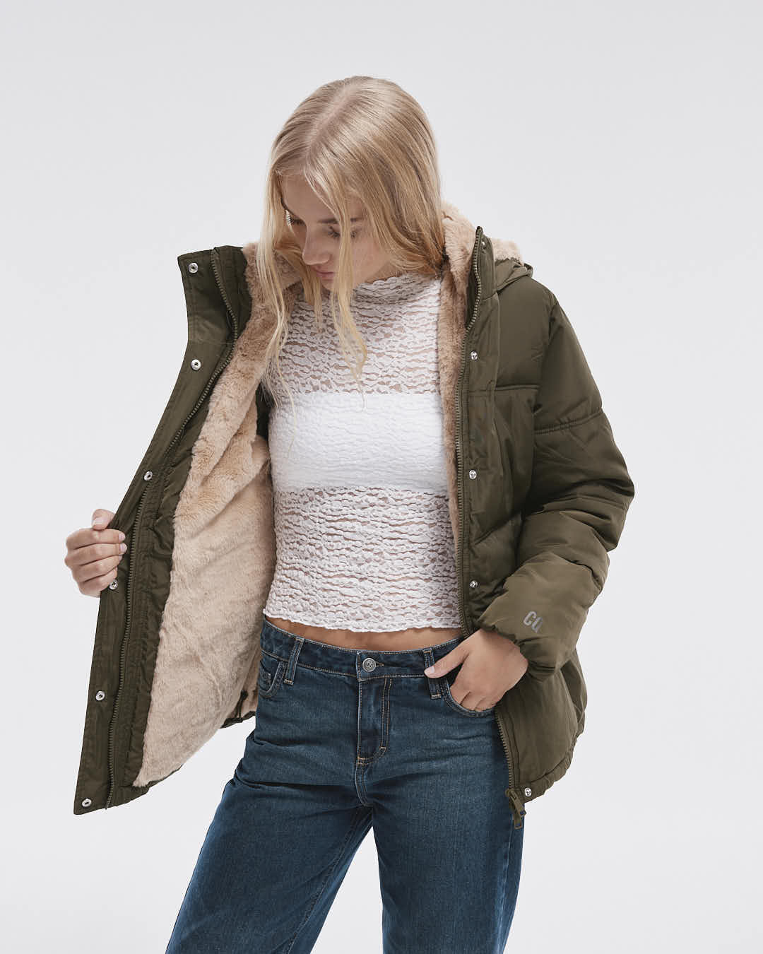 La Campera Vermont es tu nueva aliada para el frío, con su diseño largo y matelaseado que te mantendrá abrigada y a la moda. Con un cuello alto y capucha forrada de piel sintética, además de un cierre desmontable y prácticos bolsillos laterales, esta campera combina estilo y funcionalidad.