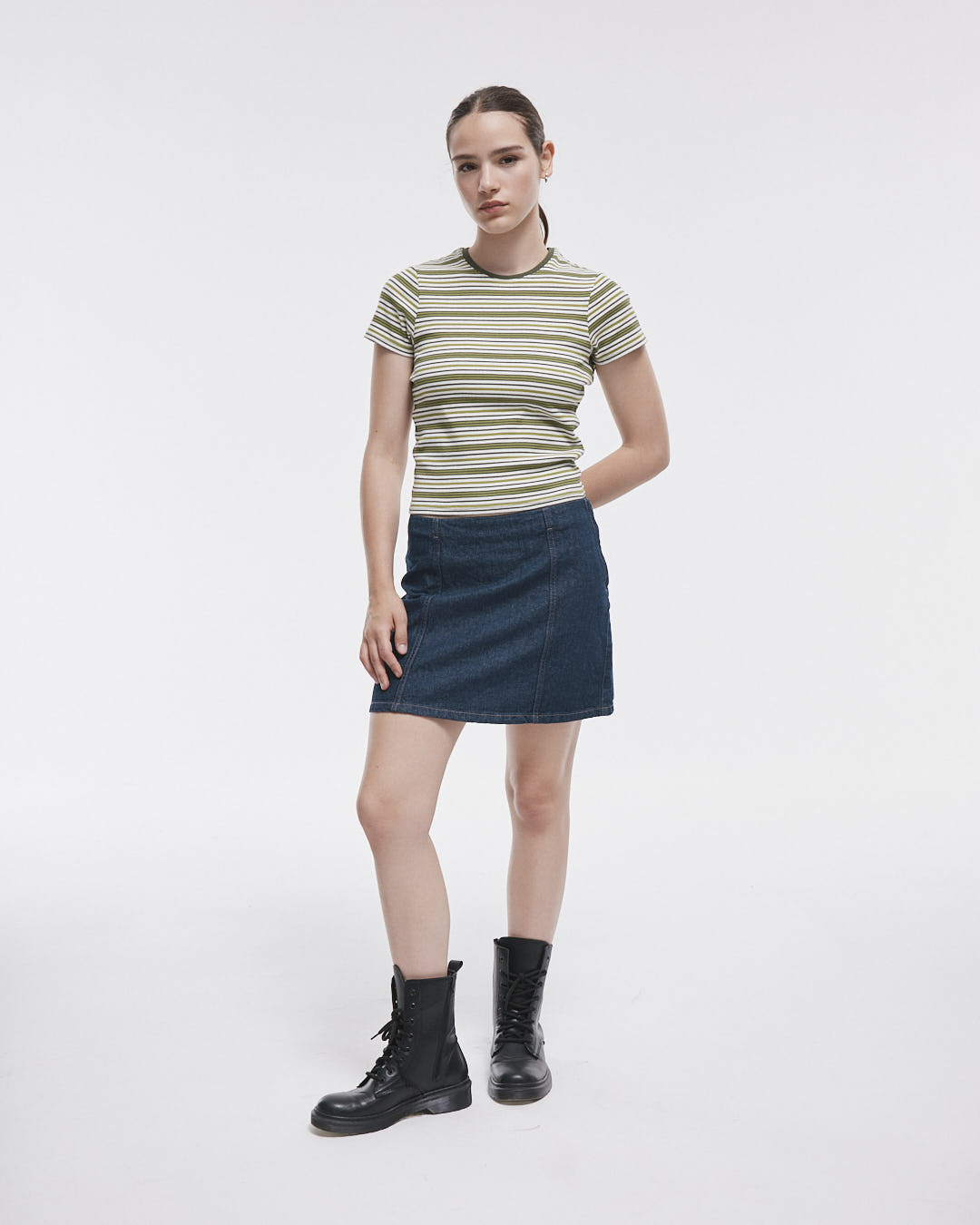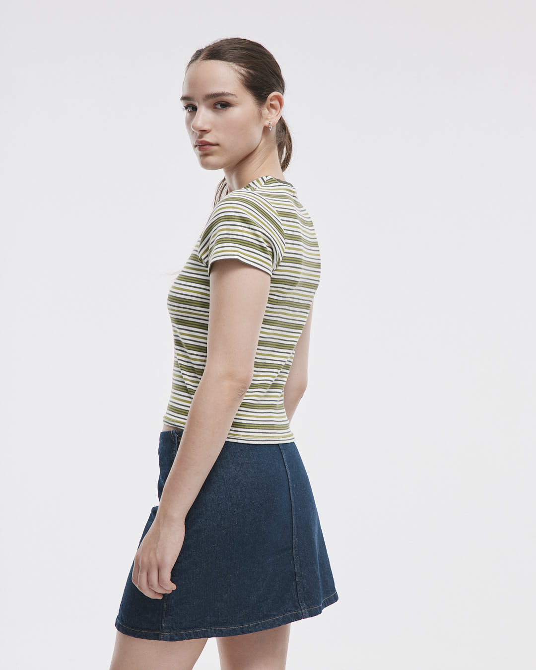 La Remera Ludmila es la prenda perfecta para tu guardarropa: hecha de 96% algodón y 4% elastano, su diseño de manga corta y rayas con un cuello redondo liso se ajusta al cuerpo, brindándote comodidad y estilo en cada ocasión.