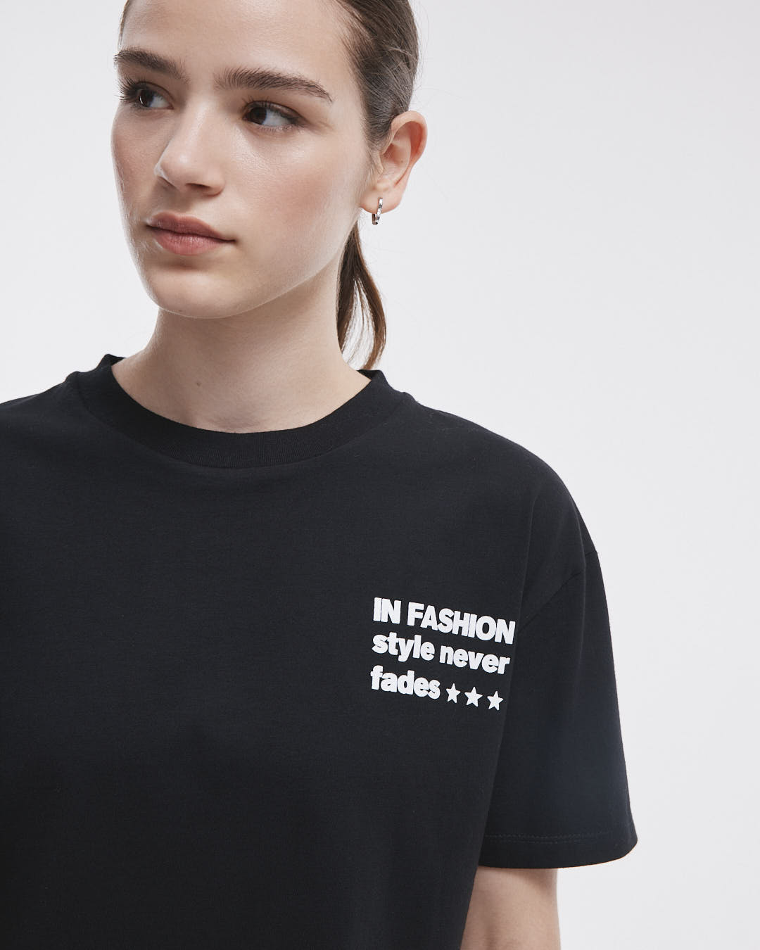 La Remera Eugenia es la prenda perfecta para tu guardarropa: hecha 100% de algodón, esta remera de manga corta con cuello de ribb te ofrece un calce holgado y cómodo. Con estampas llamativas en el frente y la espalda.