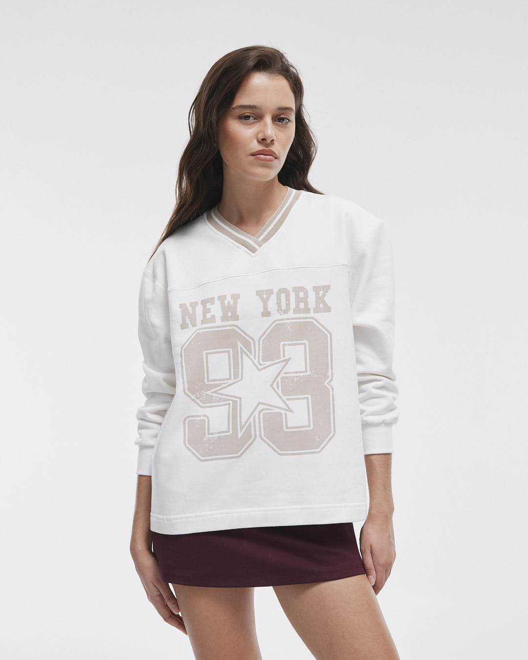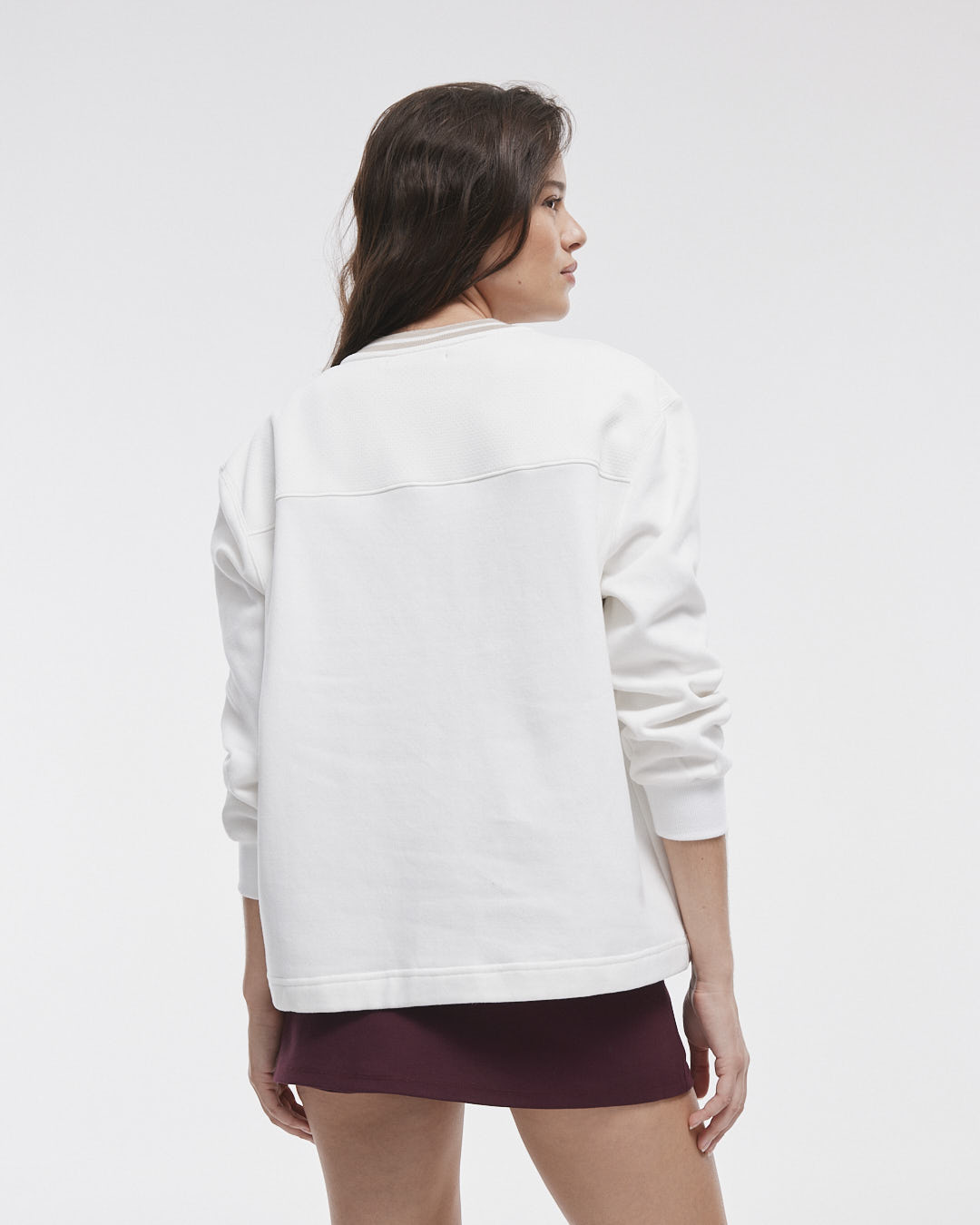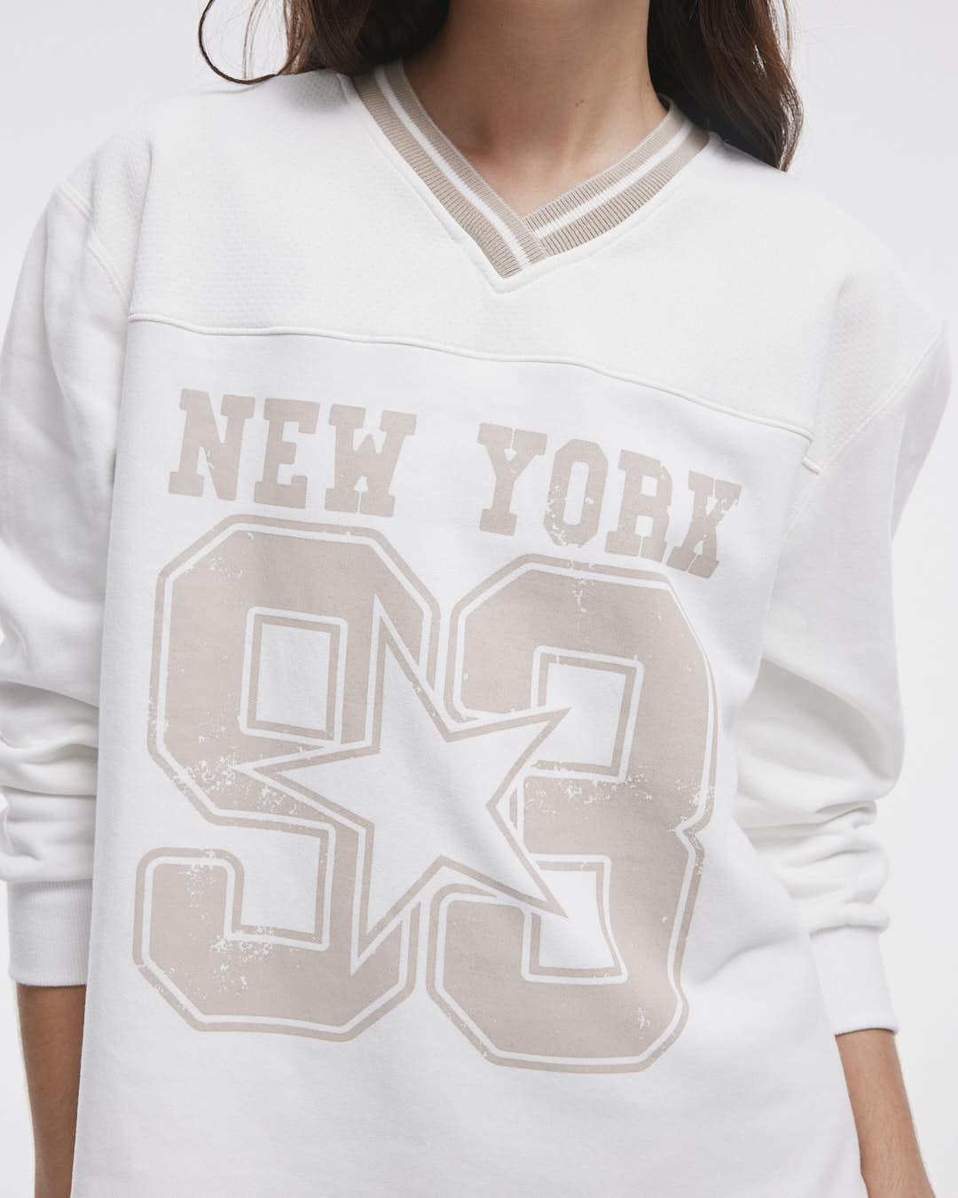 El Buzo Megan es la combinación perfecta de comodidad y estilo, hecho de 70% algodón y 30% poliéster. Con su diseño de frisa y detalles en mesh en el recorte delantero y trasero, este buzo cuenta con un cuello tejido en forma de V cruzado y puños de ribb, además de una estampa en plastisol.