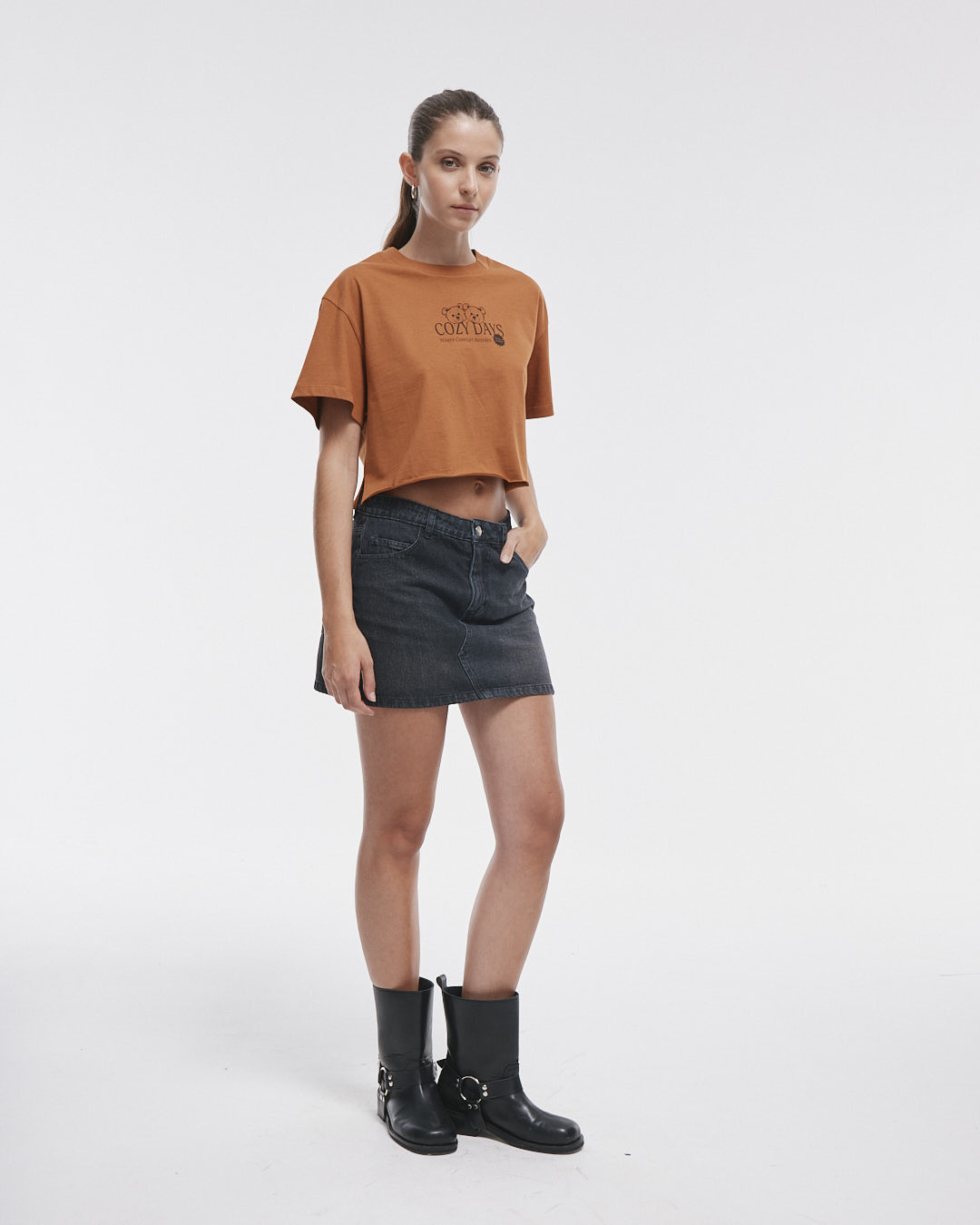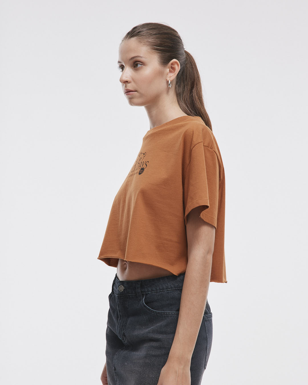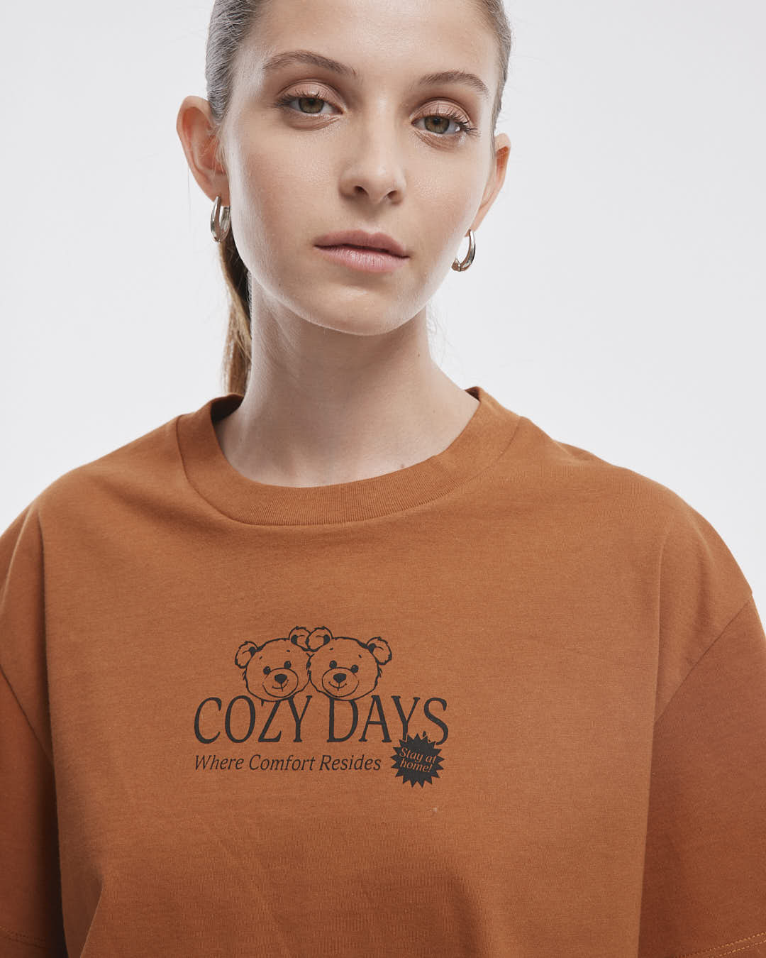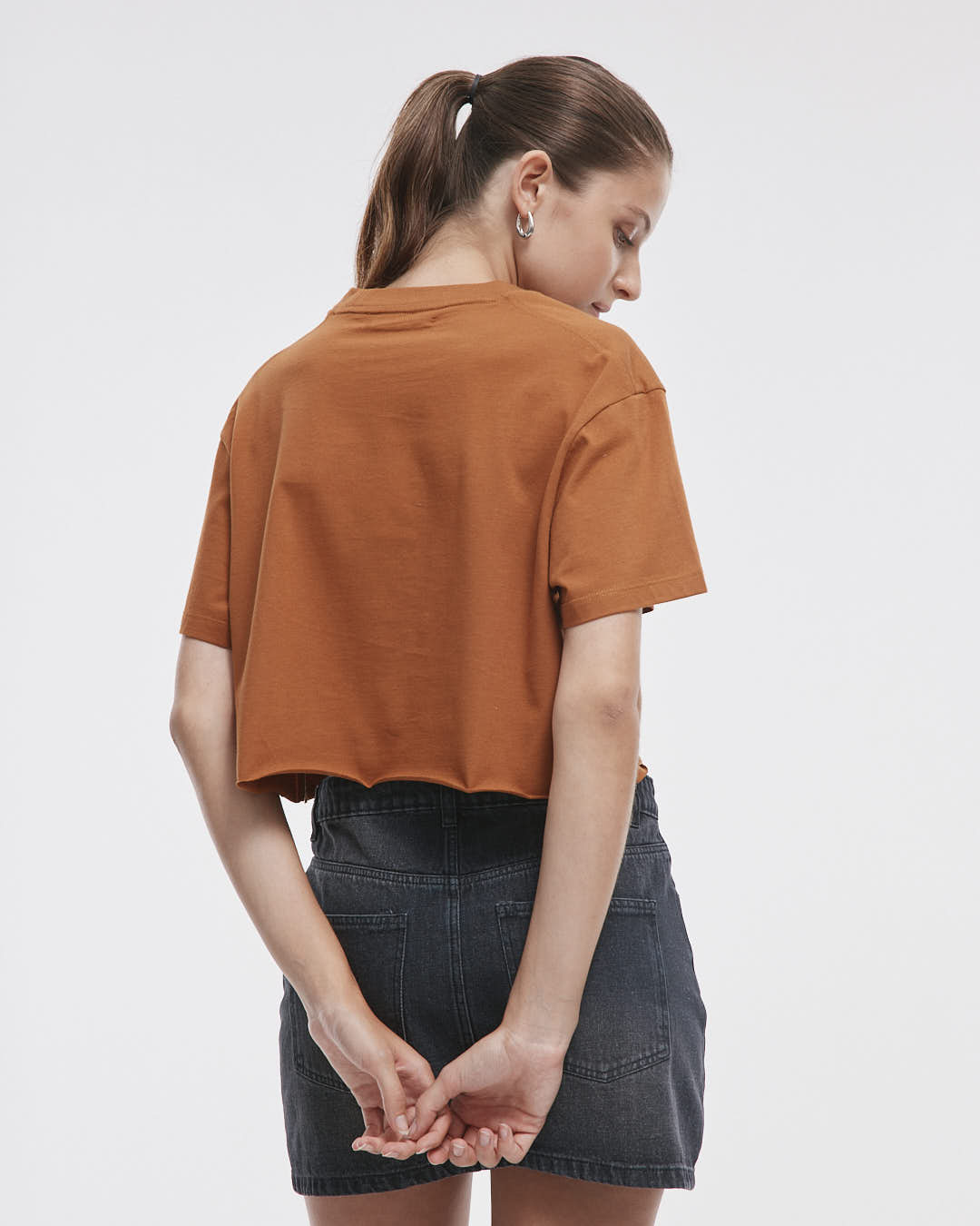 La Remera Abril: confeccionada en 100% algodón, esta remera de manga corta y calce holgado cuenta con un cuello de ribb y tajos laterales que le dan un toque único, además de una estampa en el frente.